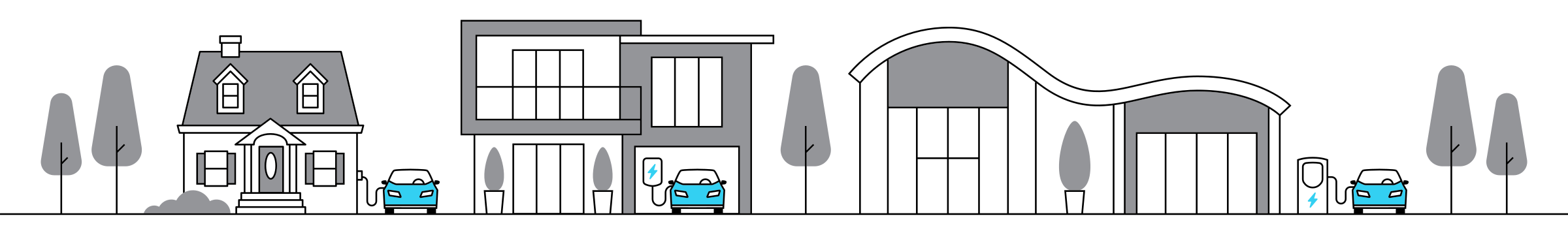 Charge while you sleep, work, or at a growing number of public chargers.